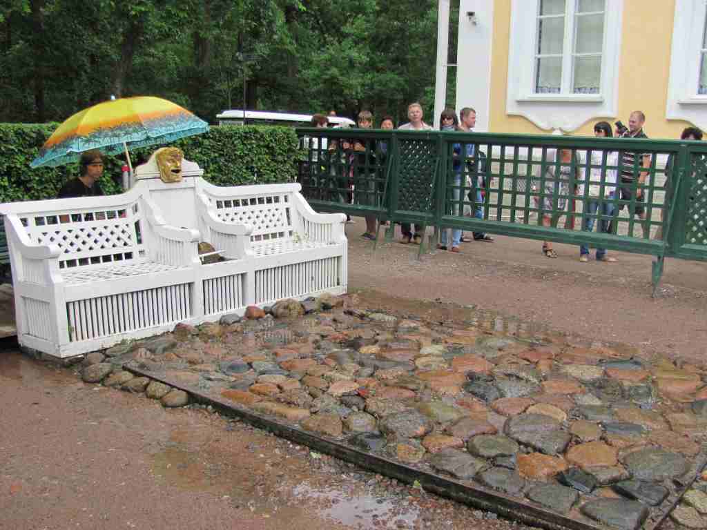 Имаше и забавни фонтани, като напр. място с оголени камъни, по които ако стъпи човек веднага започва да го пръска вода от земята. В групата ни имаше деца, които веднага се възползваха и останаха изкъпани от камъните. Друг фонтан бе под формата на гъба, по която се спускаше вода, но вътре в гъбата имаше пейка на сушинка. Идеята бе човек да мине покрай капките и да седне на пейката без да се намокри, което обаче бе невъзможно и всички опитали излизаха мокри от там.