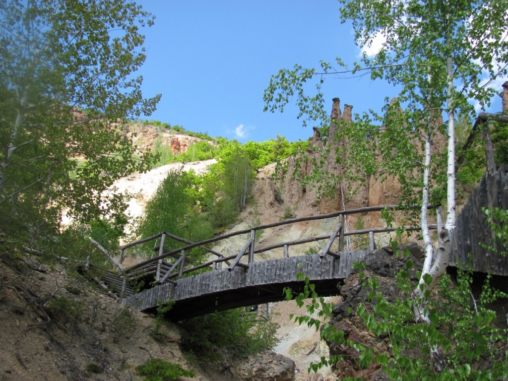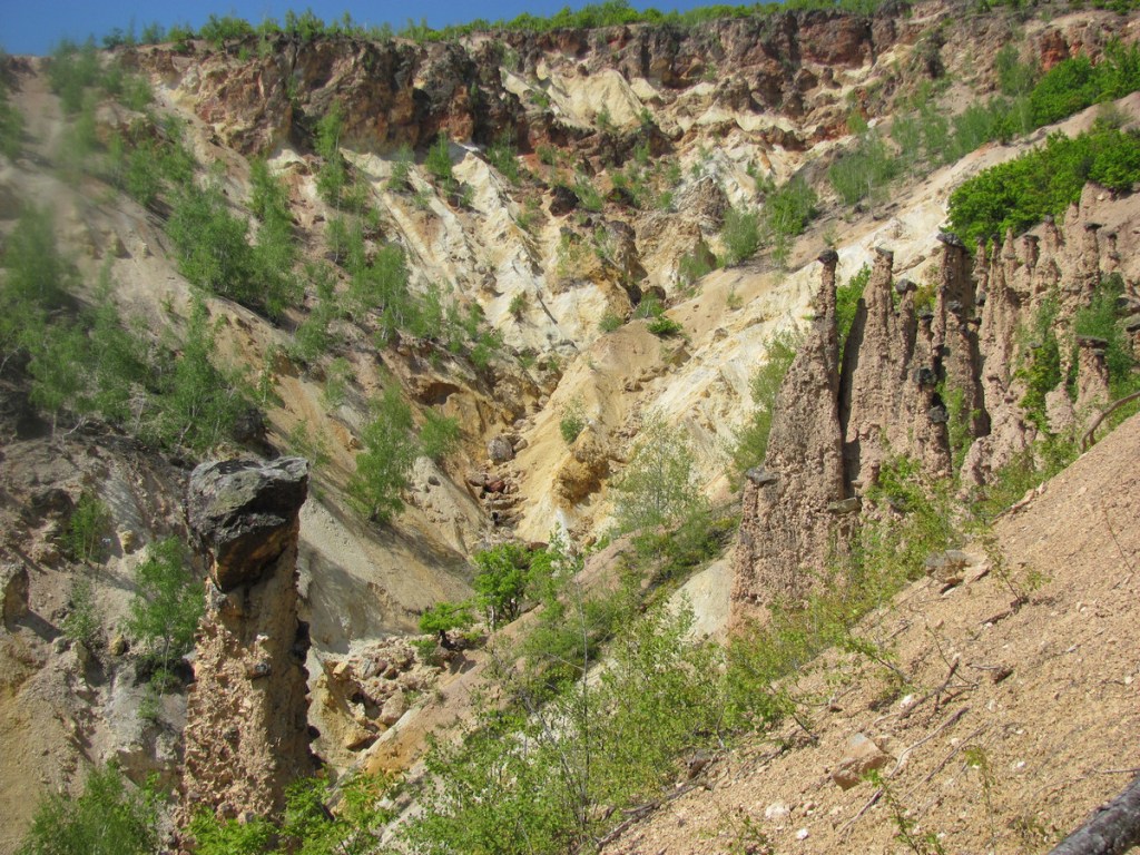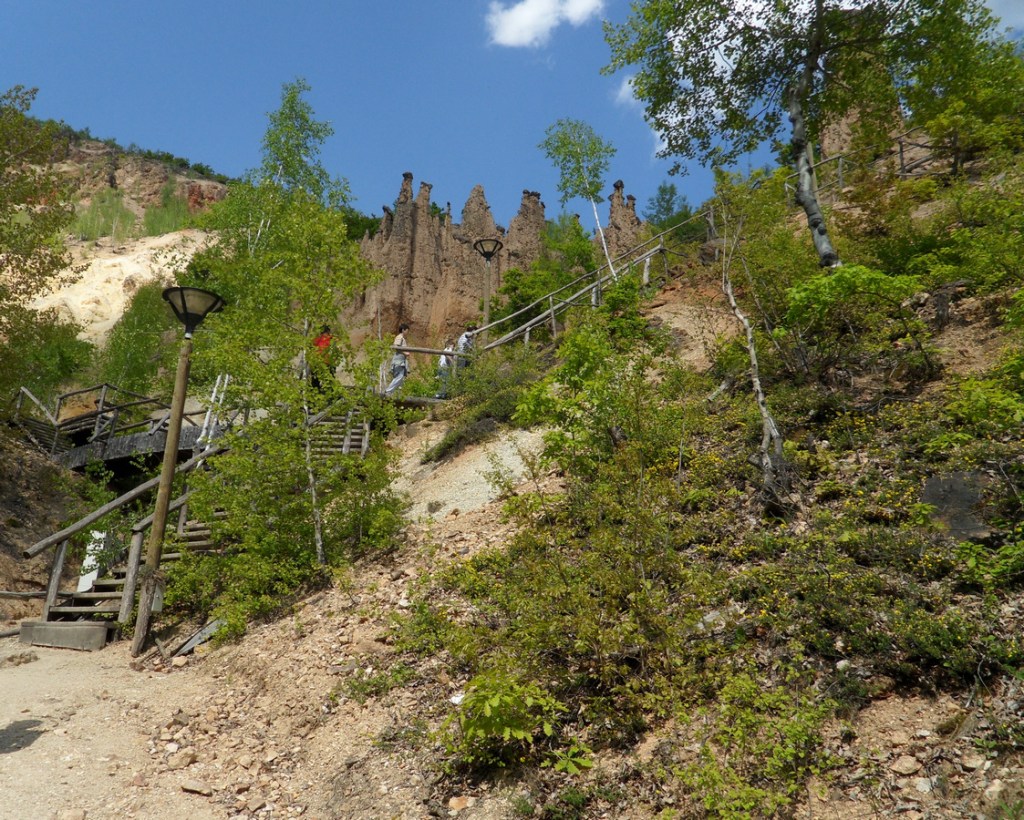 Това всъщност е богата на желязо вода, казват че е лековита, особено за кожни заболявания. Всъщност този природен феномен съчетава две неща: пясъчни фигури и два извора с киселинна вода. Заобикалящата ги природа също придава мистичност, но не наподобява дяволски град, а божествено място. Има 202 пясъчните фигури, различни по форма и размер, но в нито една от тях не успях да оприлича на младоженците и гостите. Българската версия на Каменната сватба край Кърджали имаше далеч по-правдиви и красиви фигури. Тукашните пясъчни фигури имаха различна височина от 2 до 15 метра, като всяка „пирамида” има шапка от камък на върха си. Казват, че подобни образования имало и в Съединените щати, но там мястото се наричало „Божествена градина”. Това, което ме впечатли тук бе чистотата. Природният резерват е много добре поддържан и са изградени много неща – като панорамни тераси и дървени мостчета. Слънчевата разходна из зелената гора, определено ми допадна и май не е лошо да отидеш на гости на дявола 😉