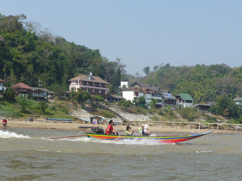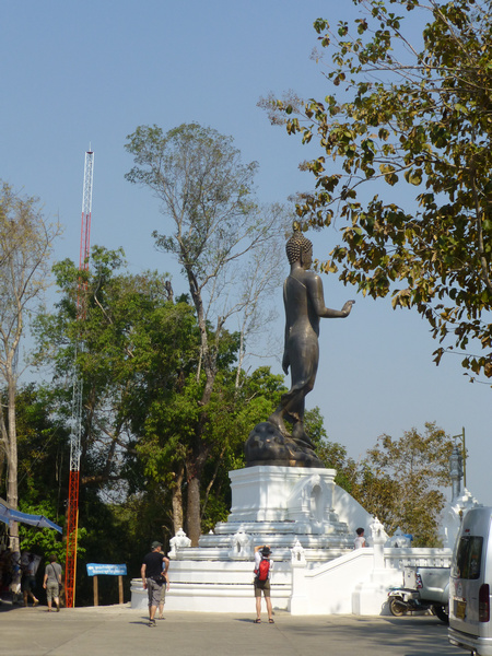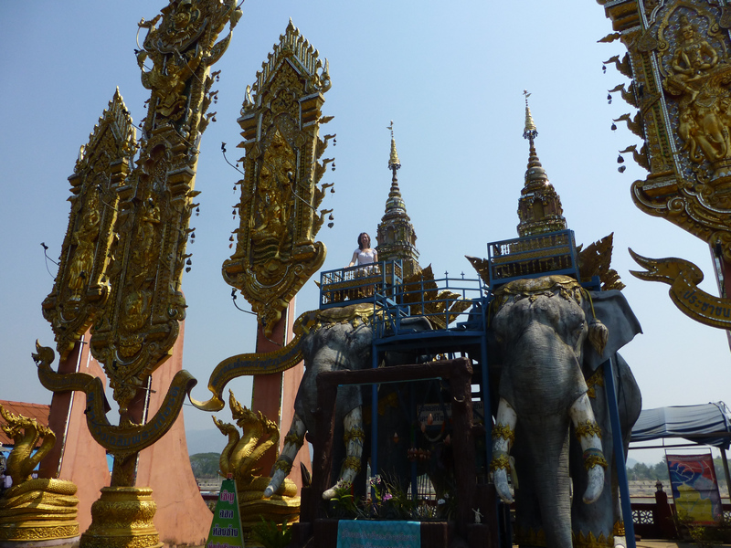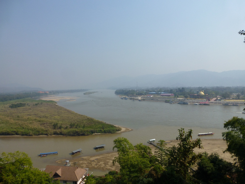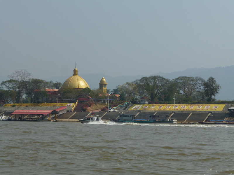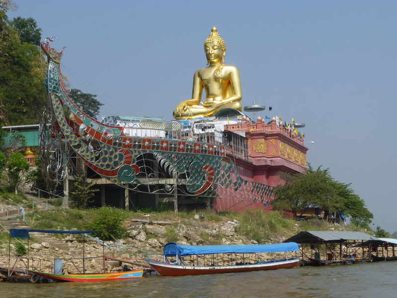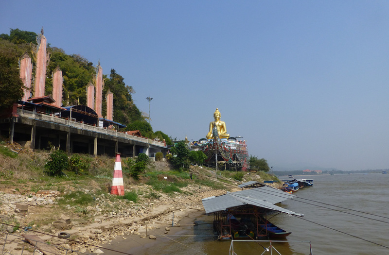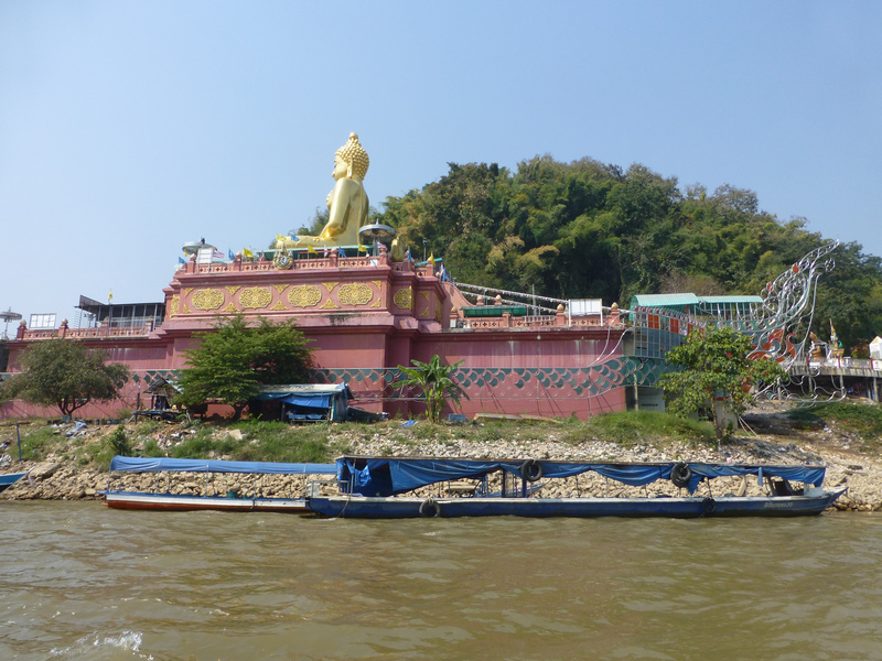 On its border with Thailand, Laos has a large island in the river, which the guide showed us and presented as the property of the Chinese mafia. It has almost everything — a casino, hotels, a restaurant, a place to have fun with women of 5 races, a golf course, even an airport — they call it Asian Las Vegas. There were many drugs from which the Chinese mafia became rich. A lot of Chinese came here before. It’s not that popular now. At 11:30, when we passed by boat, the island seemed deserted to us, and yet we were happy to take some pictures. Much nicer photos became of the huge Golden Buddha, which was erected on the Thai bank of the Golden Triangle.