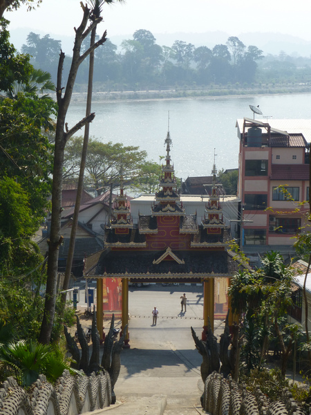 In our program it was not included, but we had a very pleasant boat trip along the Mekong River and taking pictures of the banks of the three countries. Particularly interesting was the coast of Burma and Laos, from where were many casinos. On the side of Thailand there were temples and greenery. Interesting were the specialties that were sold on the Lao side, but which we could not see or try, such as snake schweps (a drink with a snake in the bottle) and schnapps with Tiger testicles. I liked the boat trip very much, and just before starting it, we climbed 100 steps that led to a temple on the hill, from where there was a wonderful view over the Golden Triangle. The rivers really formed a triangle and it was interesting to see three countries from one terrace. We had no right to go down to either Laos or Burma, but we got magnets from Thailand as a souvenir from all three countries we might one day visit.