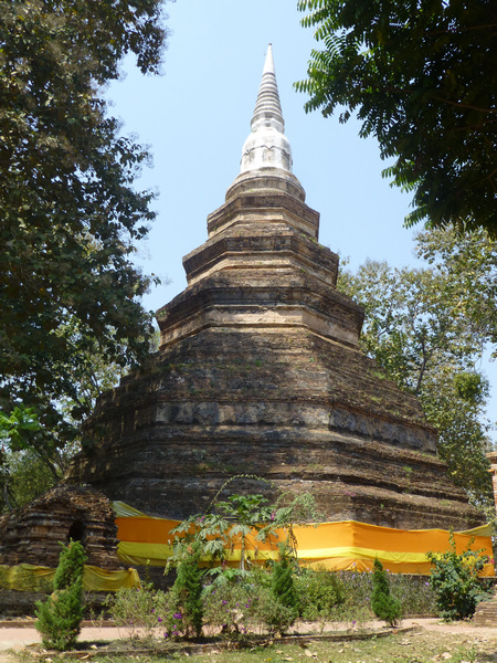 The city of Chang Rai was only 2 km from the hotel, and was famous for its sale of antiques. It was one of the oldest cities in Thailand, founded in 1262 by King Mengrai as a central location in the country’s first independent kingdom. But after only a few years, the king moved his capital to Lampoon, and then to Chang Mai. The abandoned Chiang Rai today was a medium-sized city located casually on the banks of the Kok River. Last night, while traveling to the hotel, we were able to catch a glimpse of its fortress walls dating back 700 years.