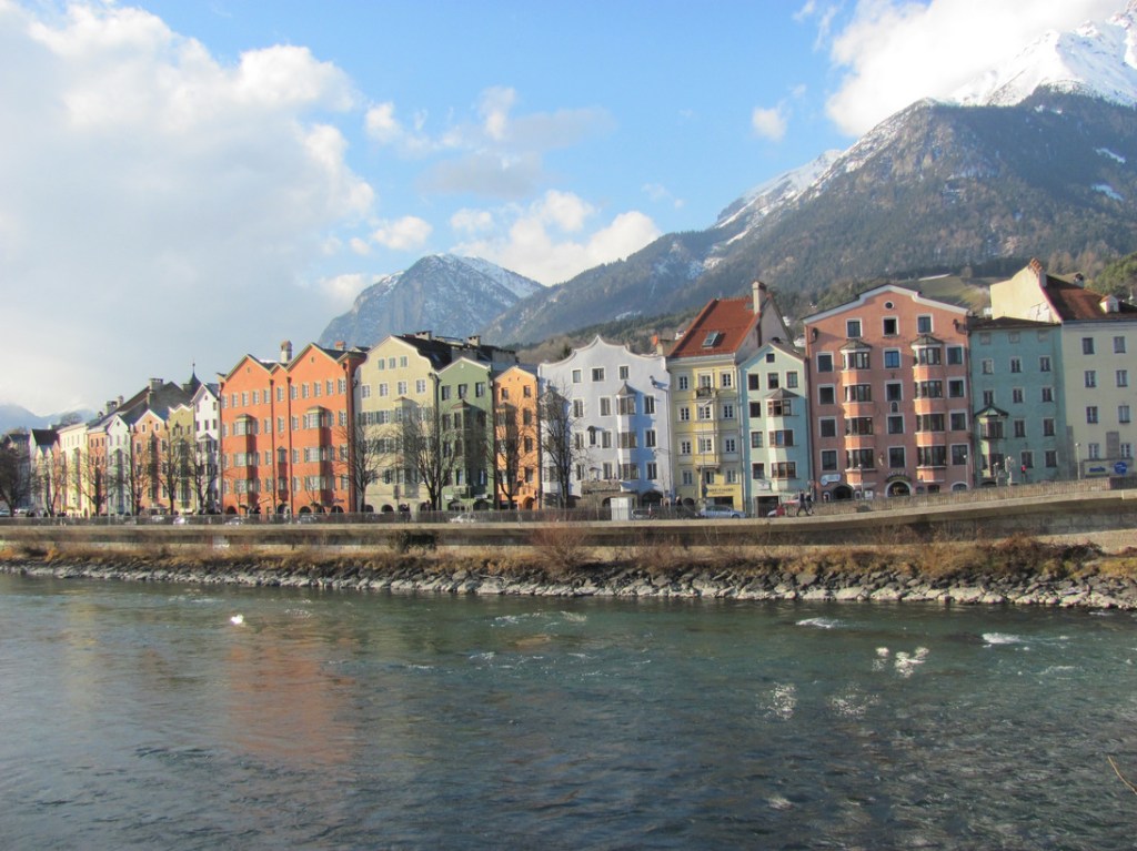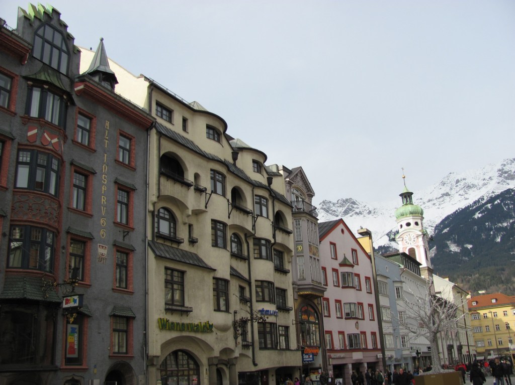 We headed to the next symbol of Innsbruck – the Inn River with colorful houses perched on the banks. To get to them we passed through the old fortress of Otoburg, first mentioned in 1460 and considered one of the oldest buildings in Innsbruck. I especially liked the ornaments on the windows with the colors of the Austrian flag. Today there is a luxury restaurant, with a magnificent view of the Inn River.