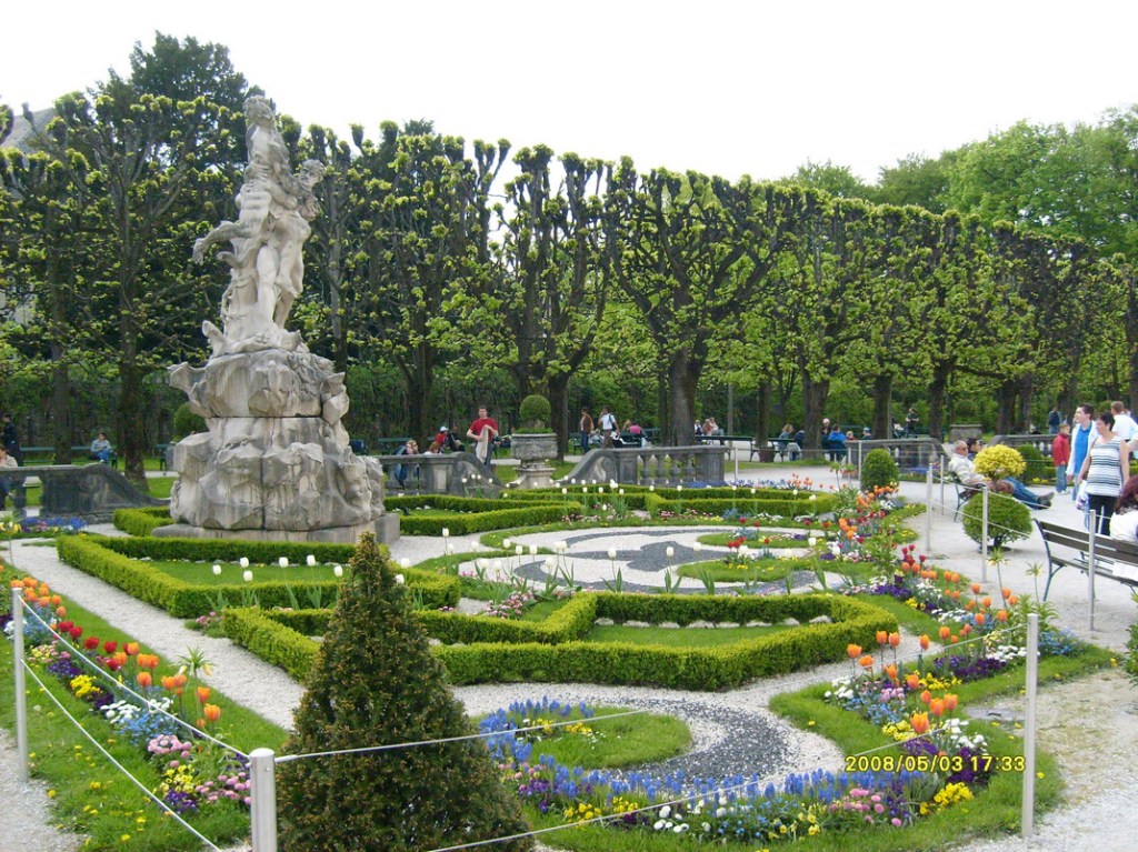 And if until a few minutes ago I thought that there was no more romantic place for kissing than the panoramic terrace of the castle, then I quickly changed my mind walking through the beautiful gardens of the Mirabell Palace. To reach them we crossed a bridge the Salzach River, whose name meant the salt river and came from the many salt mines that were situated here. The name Mirabel perfectly suited this fabulously beautiful place (the word had Italian origin and comes from mirabile – delightful and Bella – nice). Flowers in all colors were arranged as in a picture, and the marble statues and fountains in them only reinforced their grandeur. Today the castle houses the mayor of Salzburg and the municipal administration, but the building was better known for the fact that it was here, the previous ballroom, that today was converted and is known as “the most beautiful wedding hall in the world”. It was hard for me to imagine that inside the palace there could be a hall more romantic than the lovely gardens outside.