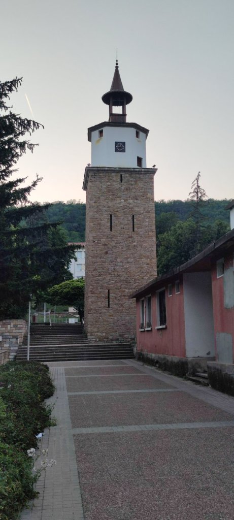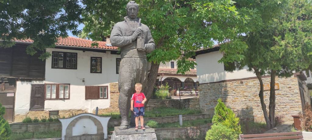 Next to the museum there are beautifully houses, and a small supermarket from which we got ice cream. We ate it in the shadow of the big monument of Kolyo Fitcheto, next to the street fountain. We enjoyed the view of the famous Lafchieva House, which turned out to be the only preserved three-storey residential building from the Revival period, built around 1840. It is known as the house without nails because not a single nail