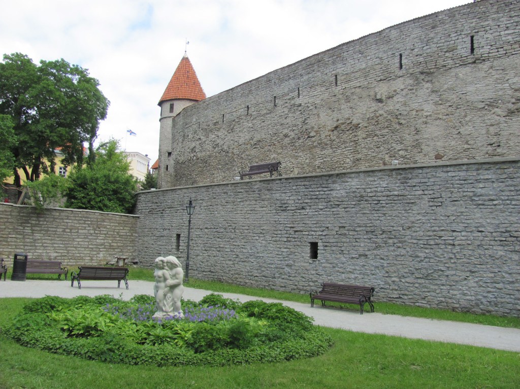 From the outside the church was also impressive with its round domes and golden crosses. It was built in 1900, when Estonia was part of the Russian Empire. It has 11 bells, the largest of which weighs 15 tons and according to Tallinn’s brochures it sounds incredible before each mass. However, there were only masses from 08:30 in the morning, so we did not succeed to hear their loud song. We descended to the fortress walls, along which there were beautiful parks.