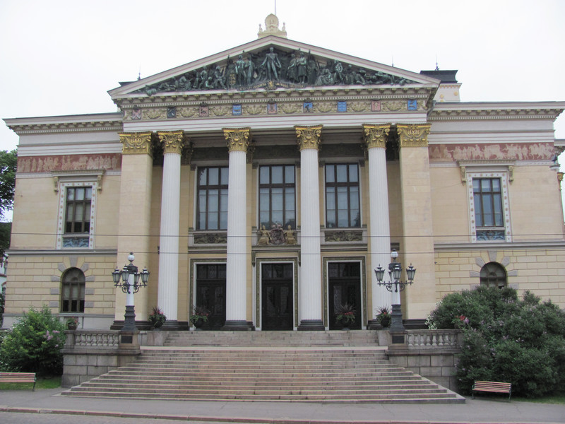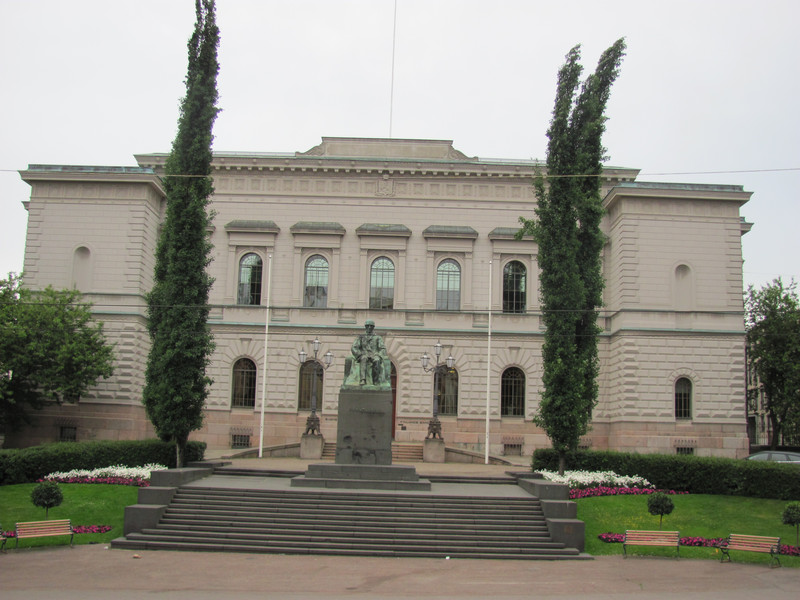 The white opera house did not impress us with its architecture, probably because it was a new construction – erected in 1993. Our attention was more focused on the opposite shore of the lake, where the Linnanmaki amusement park protruded. He had a huge Ferris wheel and roller coasters. If it wasn’t so cloudy and we weren’t expecting the rain, we’d probably stop by there too. Now, however, we took a remote photo of the Olympic Stadium (host of the 1952 Summer Olympics) and headed back through the park, but from its other shore in the direction of Kaisaniemi Park, where from 4 p.m. to 10 p.m. there was a Radio Aalto concert. The concert had already begun, with music being heard from afar. The closer we got, however, the more the rain intensified. Along the stage itself there were guards and everyone without umbrellas was released. It was raining and the last thing I wanted was to leave my umbrella somewhere, so I watched the scene from afar, seeing everything on the big screens. We listened Finnish performers for a first time, and I enjoyed it. A little before 10:00 p.m., we were already in the hotel, with wet umbrellas and cameras full of photos.