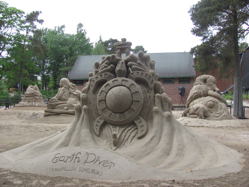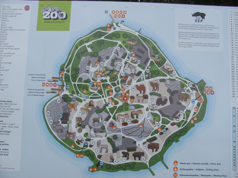 The ferry took us back to the market square, where instead of taking a walk and picking up something for lunch, we transferred immediately to the other ferry, which left in 2 minutes in the direction of the zoo. The Helsinki Zoo occupies an entire island. The cages of the animals are spacious with lots of greenery, and the variety of animals is also enviable. There was no elephant and giraffes that would be difficult to cope with in this climate, but there were lions, tigers, jaguars, kangaroos and even camels with thick fur. Especially beautiful were reindeer, among which there was a very small deer, apparently recently born. Near the bear cage there was a separate park with sand figures, which were also impressive and very beautiful.