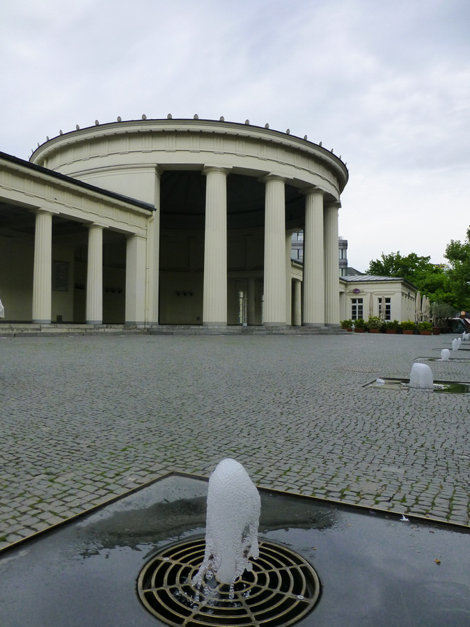 A few steps from Elisenbrunnen is the lavish theater building, and on the other side of the fountains begins a beautiful green park.