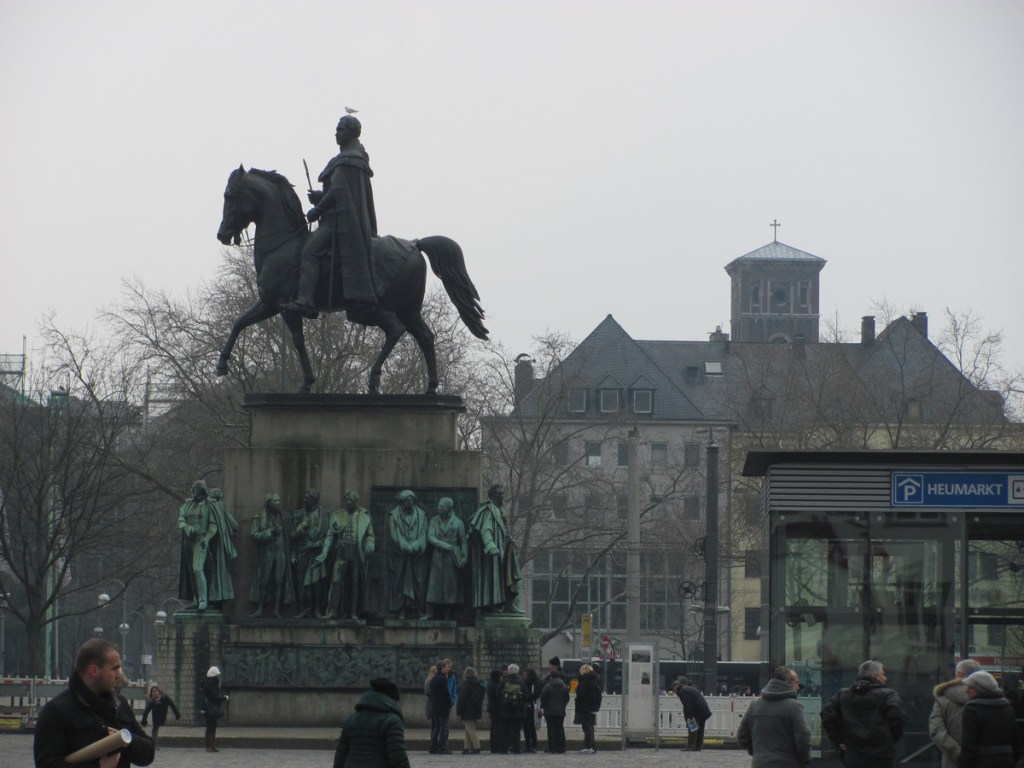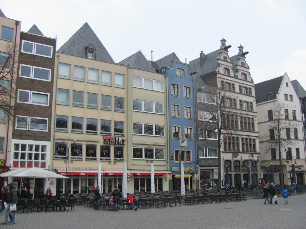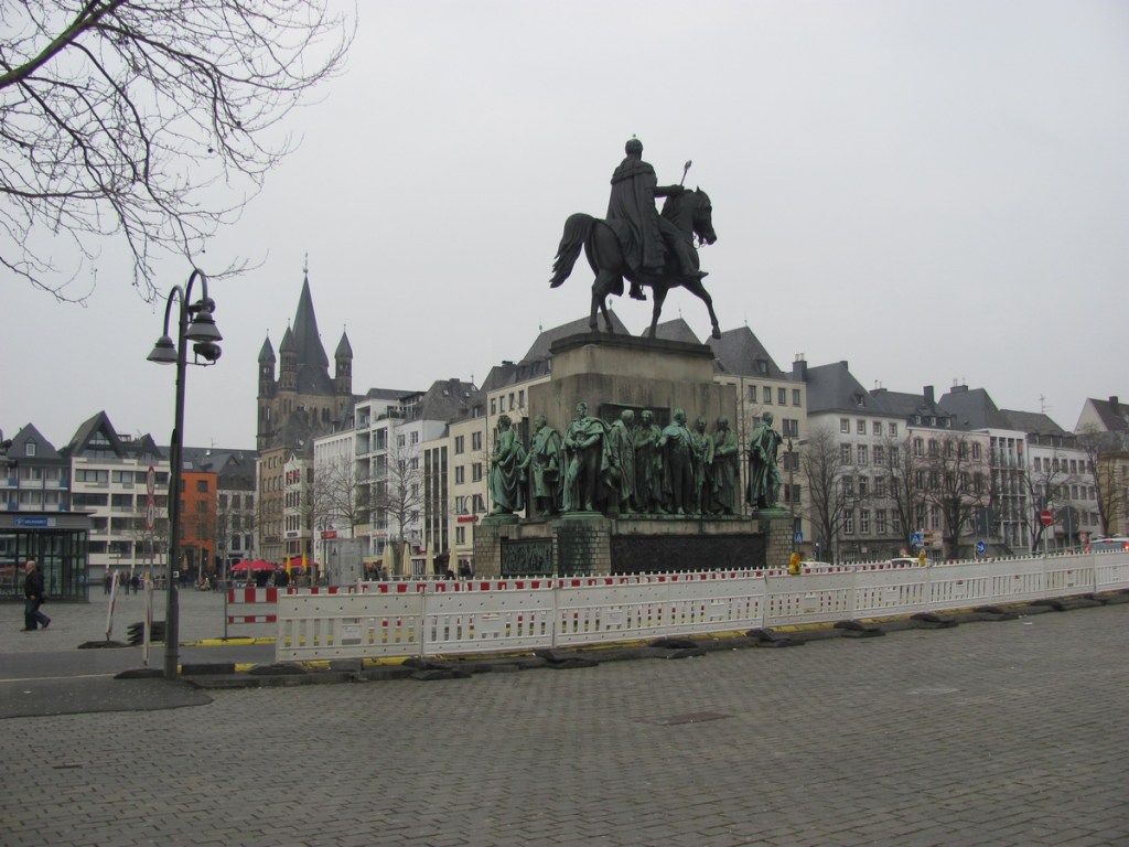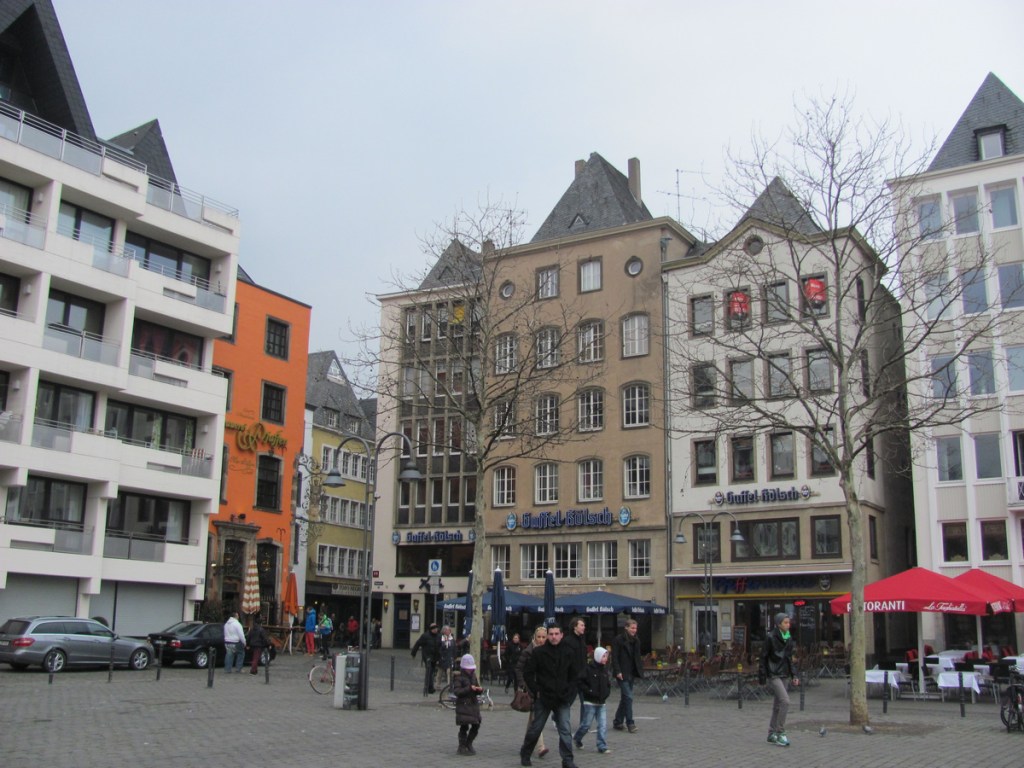 After the museum, our tourist train made a reverse tour of the city to the Cathedral, from where on foot I headed to the old part of Cologne and the beautiful market square with colorful houses and a fountain in the middle. Alter Markt (Old Market Square) was a shopping center in the Middle Ages and a place of execution, today it was turned into a picturesque place with colorful houses and flowers. The fountain in the center is named Jan-vo-Werth and symbolizes the legend of the unhappy love of soldier Jan and the girl Griet. According to the legend, Greet rejected Jan’s love because he was an ordinary farmer. However, when he went to war, he was so brave that he reached the post of general. When he returned to his hometown, he met his former love in this market square and told her, “Griet, if only you had agreed…”, and she replied, “Jan, if only anyone knew…” This legend is often presented at the Carnival in Cologne.