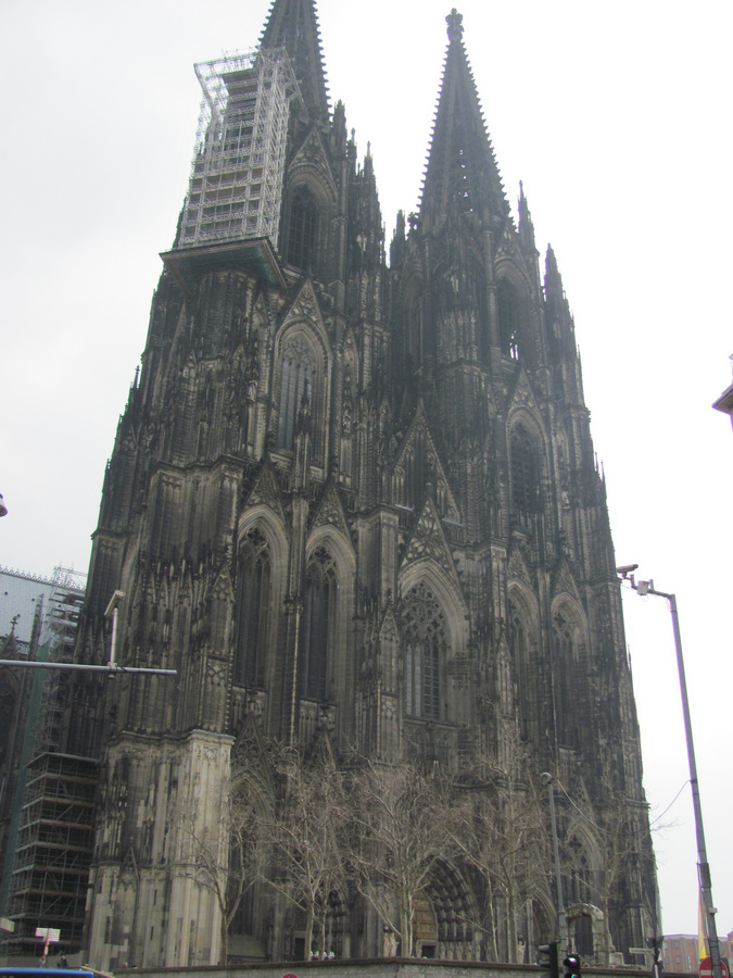 You cannot miss it when getting off the train. The reference books said that if you don’t see the cathedral from your way out of the train station, you must be on the wrong station. Cologne’s central station is directly opposite the cathedral and coming out of the train station, it gasps passers-by with admiration. The cathedral towers rises above the clouds, which only reminded me that it is quite cloudy and gray, Even a little cold.