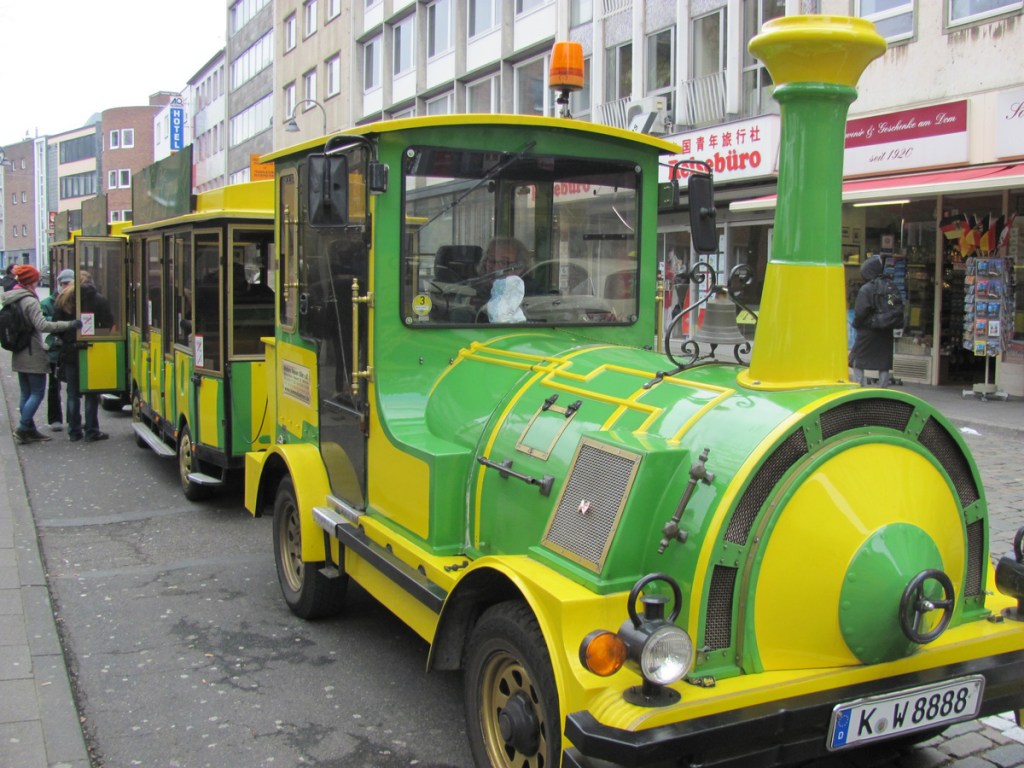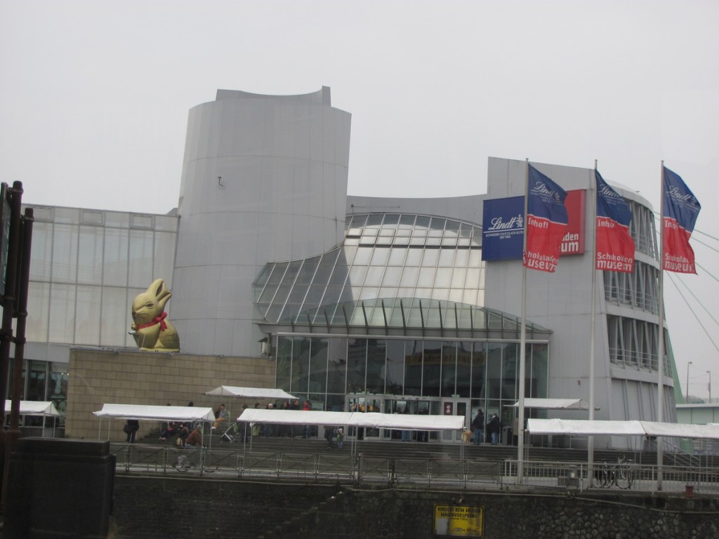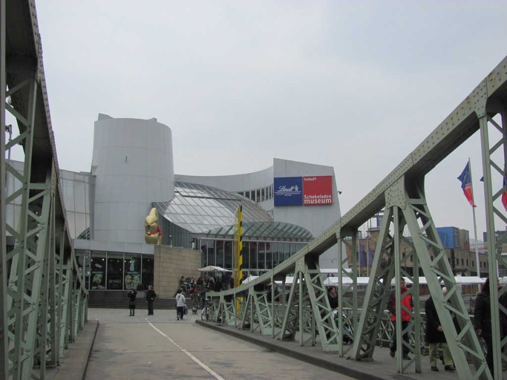 I tried to photograph the cathedral from all sides, but I didn’t succeed to capture it whole, even from a distance. Right in front of the cathedral there is a tourist train stop that led tourists to the zoo or the chocolate museum. I really wanted to see the zoo, which has more animals than any other zoo in Germany. It is also the largest elephant park in Europe. However, the cold and sullen weather dissuaded me and I headed to the chocolate museum. Along the way, I learned interesting things about the city, from the laud speakers in the train, hearing everything in German and English, practicing both languages. With the tourist train we passed several museums, passing by the port of Rheinauhafen, where interesting glazed and modern buildings are erected.