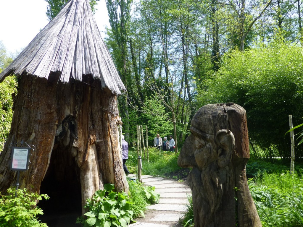 After the castle we descended along some beautiful alleys with lots of flowers. There was a primitive settlement made of trees and flowers, where even the inhabitants were made very originally from wood and roots. There was a pond with a fountain, and lots of turtles.