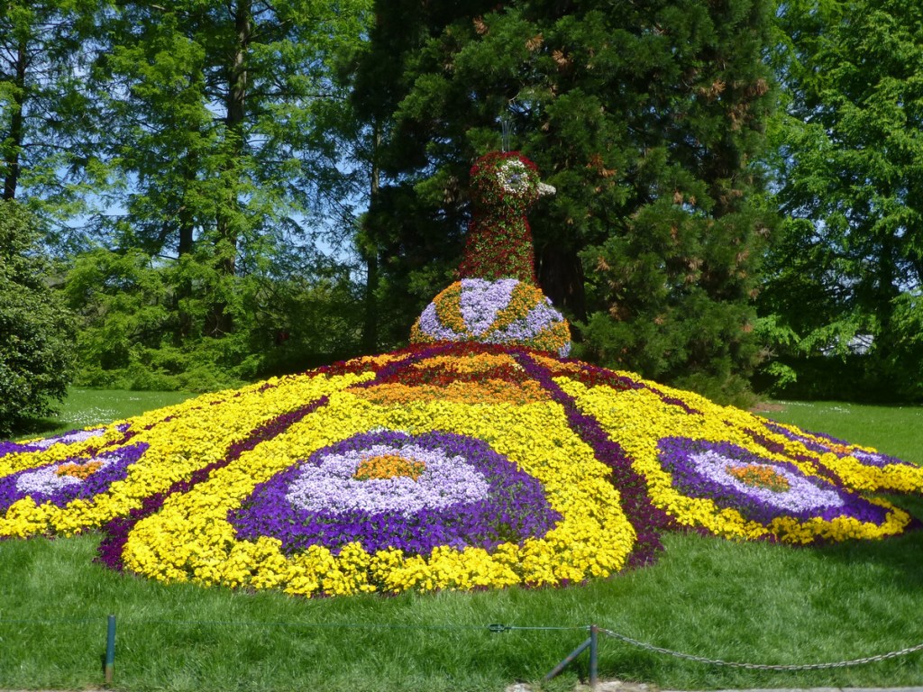 From there we headed to the animal corner, where there were llamas, ponies and goats. Before we reached the butterfly house, we passed the uniquely flower-made huge four ducklings, next to them a beautiful pheasant with an outstretched tail, and on the other side a big flower – all of them consisting of hundreds of colorful flowers.