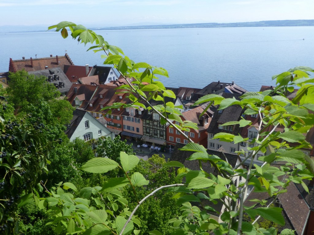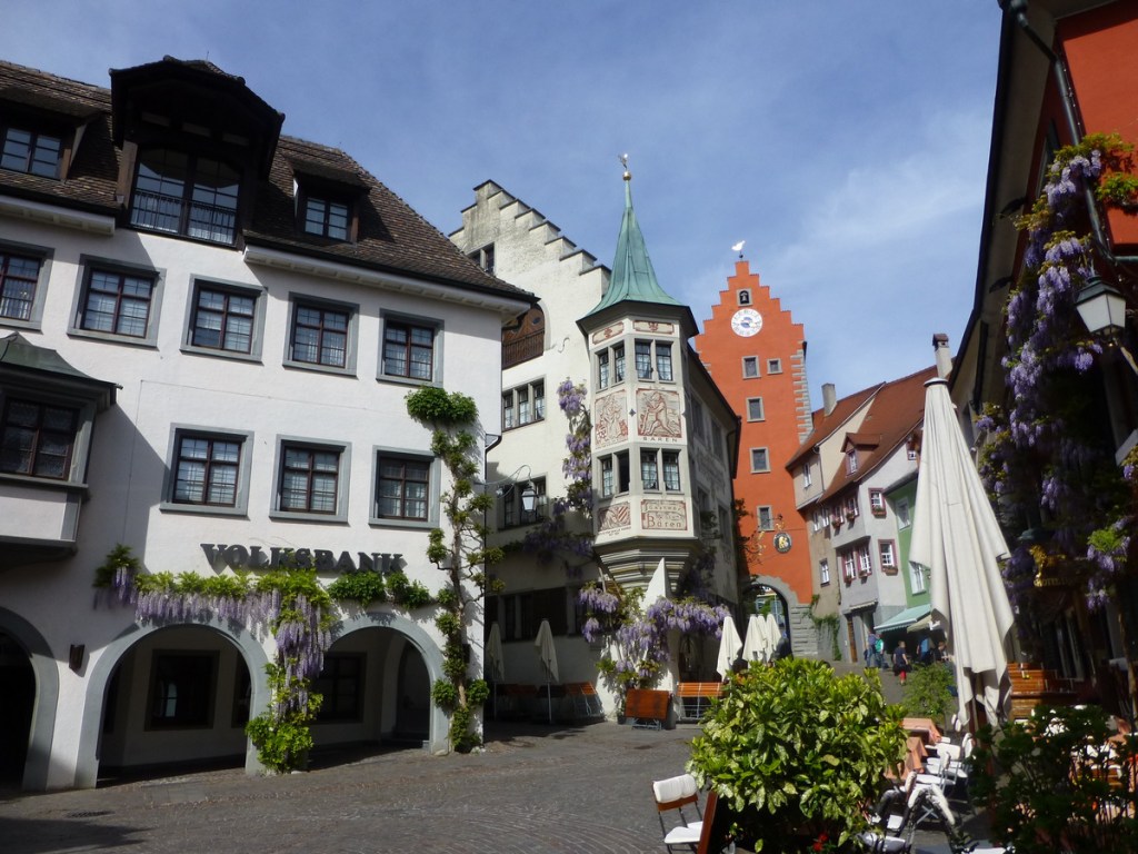 First, we walked to the old castle erected on a hill in the 7th century. Its rooms revealed fascinating medieval furniture, various knight’s armours, numerous deer horns and many other beautiful exhibits. We visited the medieval kitchens, bedrooms, and made photo of several old weapons. I especially liked the terrace with a wonderful view of Lake Constance. Today in the castle there was a nice restaurant, but we headed to the higher New Castle, erected in the early 18th century. Behind the white-pink Baroque façade visitors can see the lavish life that the archbishops who lived here had. We strolled in its gorgeous gardens, from where we took beautiful panoramic photos of Lake Constance and the city.