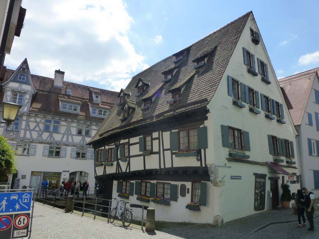 There was a beautiful promenade along the Danube bank of Ulm, with green areas and preserved fortress walls. We strall along and made our way to the butchers’ tower. It was built in 1345 and is better known as the Leaning Tower of Ulm. There was a legend about it that it was named after the butchers (Metzger) who used to put sawdust in the salami. When the citizens felt this, they imprisoned the criminals in the tower. As the well-guarded butchers cowered in a corner as the angry mayor entered, the tower tilted to one side. In reality, the tower is leaning because it was built on what was once a swamp.