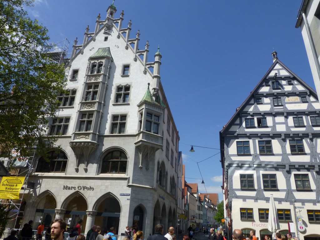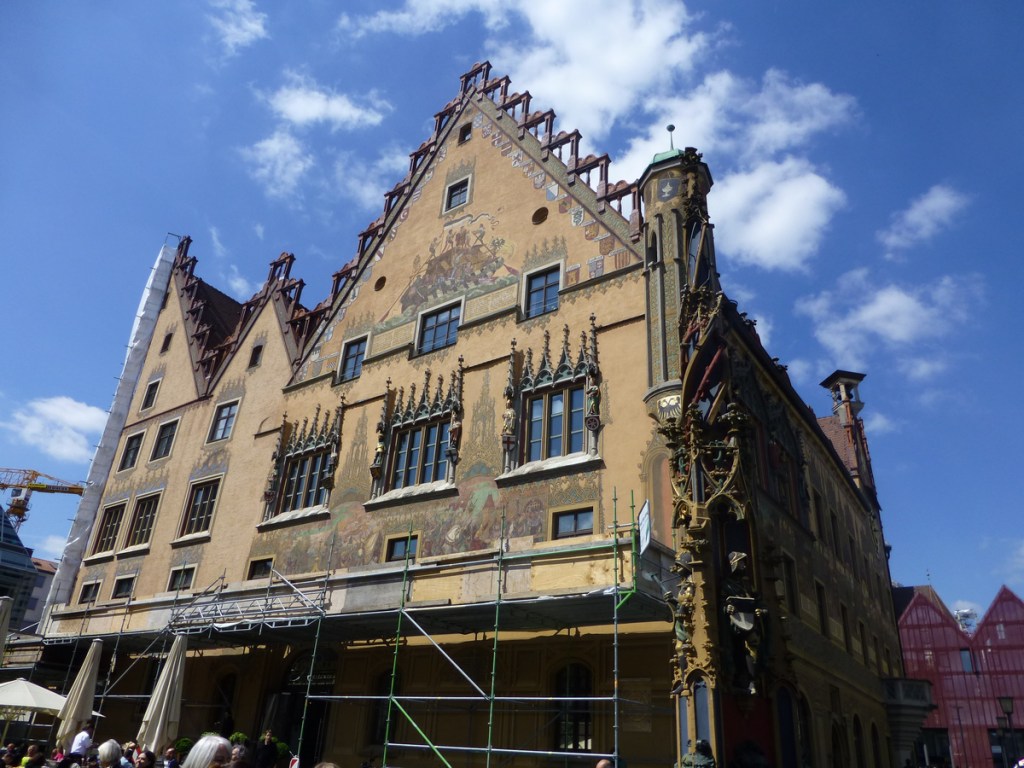After the series of photos by the Danube, the fortress walls and the beautifully painted houses, we headed to the next famous landmark of Ulm – the beautiful town hall. The town hall was one of the most beautifully painted houses with bright paintings on the walls. From the tourist book I learned that in 1397 the town hall was connected to the shop attached to it, and numerous reconstructions were made, achieving the main goal of creating a larger meeting hall to accommodate the 72 the adviser (in the past there were only 32). In 1419, the connected buildings received the name town hall. In 1520, an astronomical clock was placed on its eastern facade. In 1944, the picturesque town hall was destroyed by bombs. In 1951 it was rebuilt according to the original plans, and in 1987-89 the interior was completely renovated. A replica of Albrecht Ludwig ‘s flying machine could be seen on the ground floor of the building Berblinger , the legendary “Tailor of Ulm “. Unfortunately, his attempts to fly more than 200 years ago were not successful.