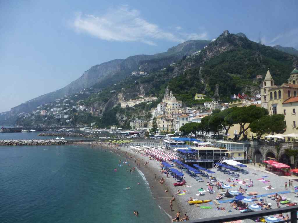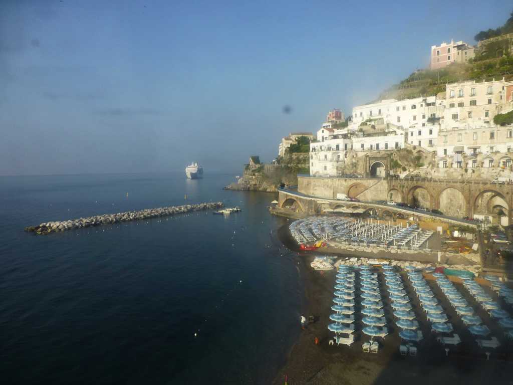 By bus we passed through the famous picturesque town of Positano, about which the American writer John Steinbeck wrote in 1953 that Positano is “a dream place that does not look real when you are in it and becomes tangibly real after you leave it”. Its pastel-coloured houses were perched on the steep bank, and they were as densely arranged as we were in the tourist bus. However, this did not make it less charming and was probably a pleasant place in the off-tourist season. However, the steep descent and climb up and down were not part of my idea of an ideal sea holiday.