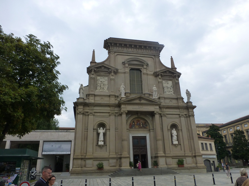 Next to them is the beautiful building of the Banca Populare di Bergamo, with a beautiful clock tower and on Monday morning from there began a rich street market, stretching to the picturesque Baroque church of Santi Bartolomeo e Stefano. The church was erected between 1613-1642, and inside there are unique huge canvases of the famous Lorenzo Lotto.