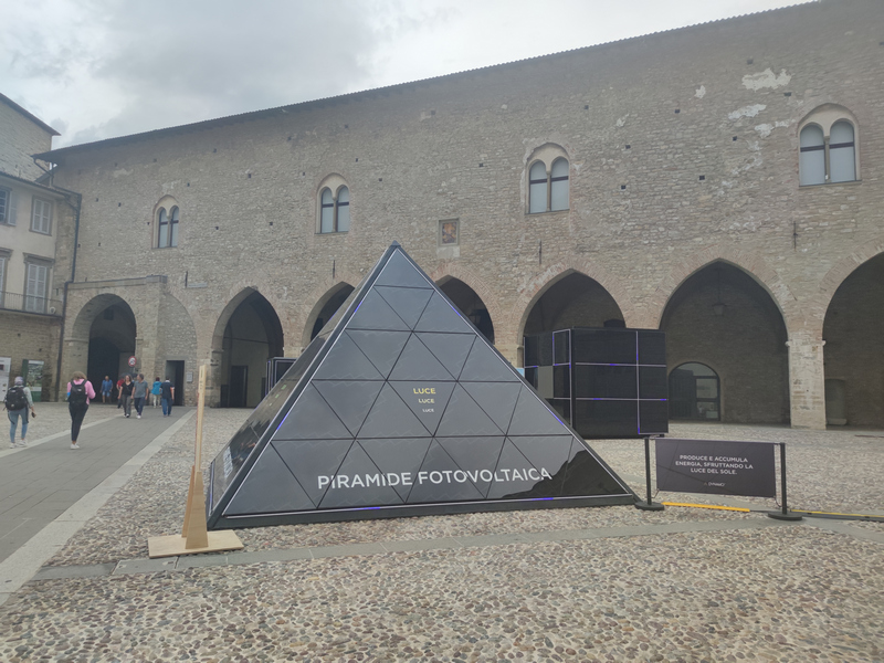 Our walk in the Upper Town began by passing under the clock tower Torre della Campanelle and getting on the medieval Piazza della Cittadella square. Here, however, instead of the medieval garrison, a Photovoltaic pyramid resembling the one in front of the Louvre stands out, the Italian one is located in front of the Natural History Museum.