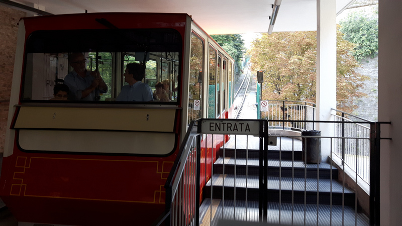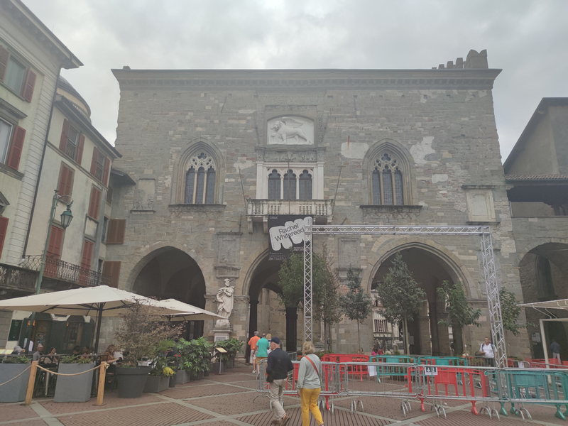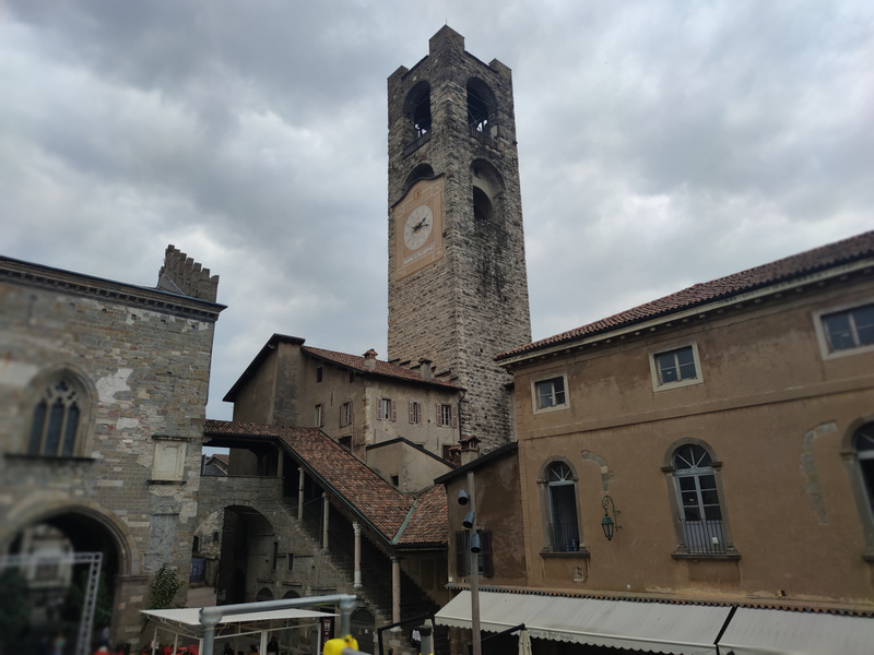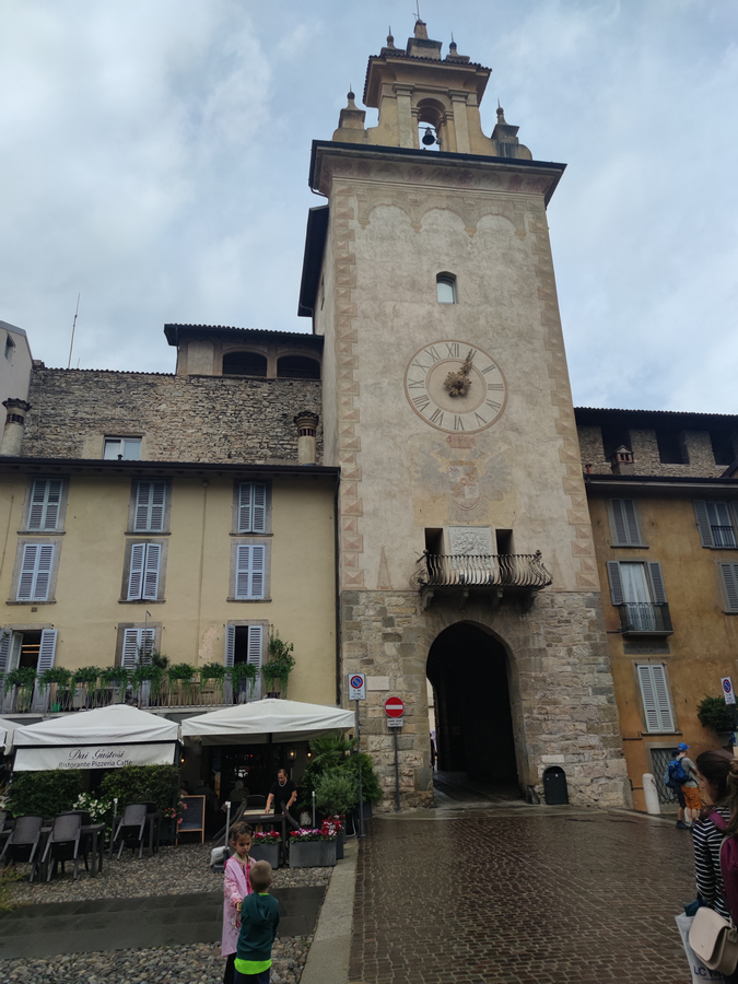 A narrow cobblestone street led us to Piazza Vecchia – the heart of the city, where one of the oldest libraries in Italy is located with a 52-meter tower that is worth visiting and climbing, either on foot or by elevator, revealing an incredible view of the whole city of Bergamo. On Piazza Vecchia the court building is located, decorated with a statue of the Venetian lion.