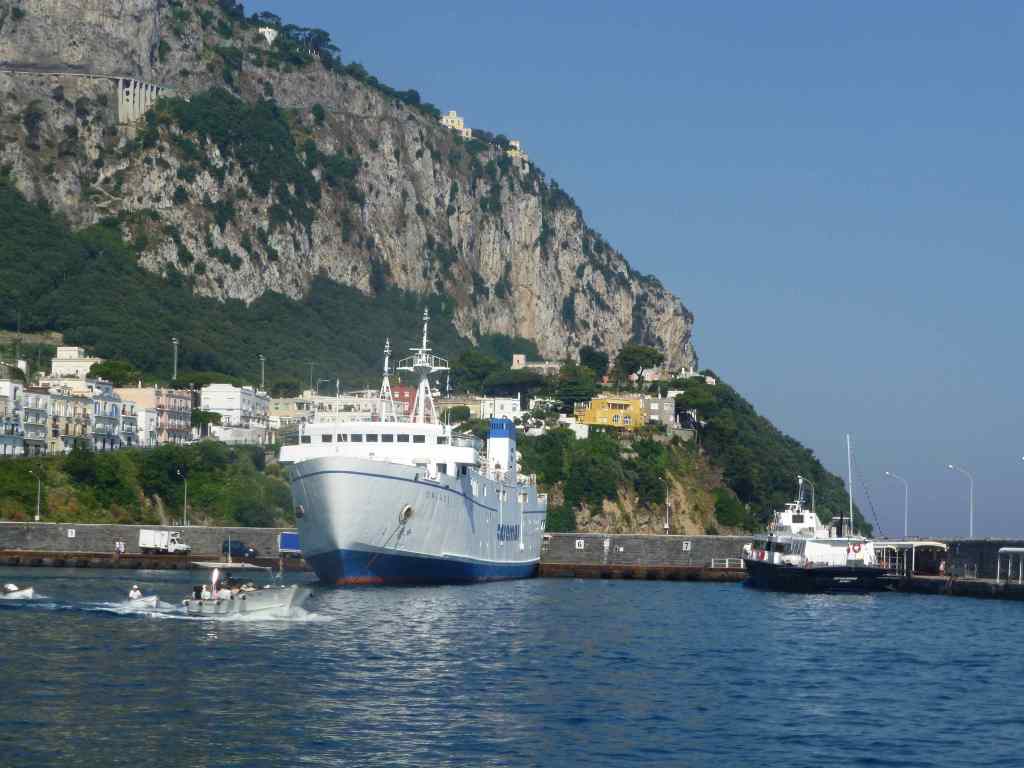 At 16:00 we took the funicular (which is a small electric train) from the central square of Capri and went down to the port, where we walked and even took a dip in the warm Tyrrhenian Sea before boarding the ferry back to Sorrento.