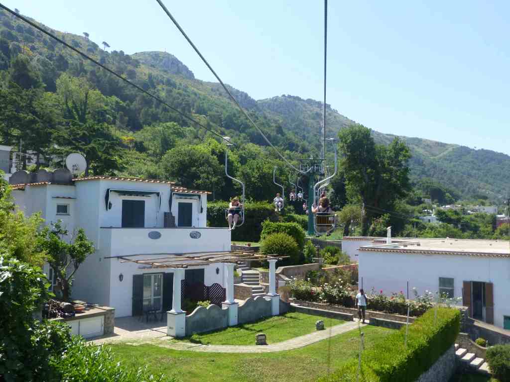 Above the blue cave there was a small chapel, and on the sides of it stairs leading to a bus stop, from where we took the city bus to the town of Anacapri. Anacapri was actually one of the two “big” cities on the island – the other, of course, was called Capri. Anacapri was located at the foot of the Monte Solaro mountain, which we decided to climb taking advantage of the lift, for which there was a queue. The ticket price was 10 euros, and the lift took us to a height of 589 meters. However, the view from there was really worth it and the lift ride fascinated me.