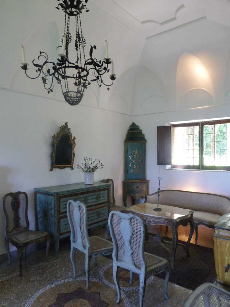 We took many photos inside and outside the house. In the dining room, for example, there were beautiful Renaissance furniture from Bologna and Swedish tableware from the 18th century. On the floor just in front of the stairs there was a mosaic-copy of Pompeii’s one with a skeleton carrying in his hands a wine vessel and a glass of water, which personified that one should enjoy life while he could, with death always lurking in the corner.