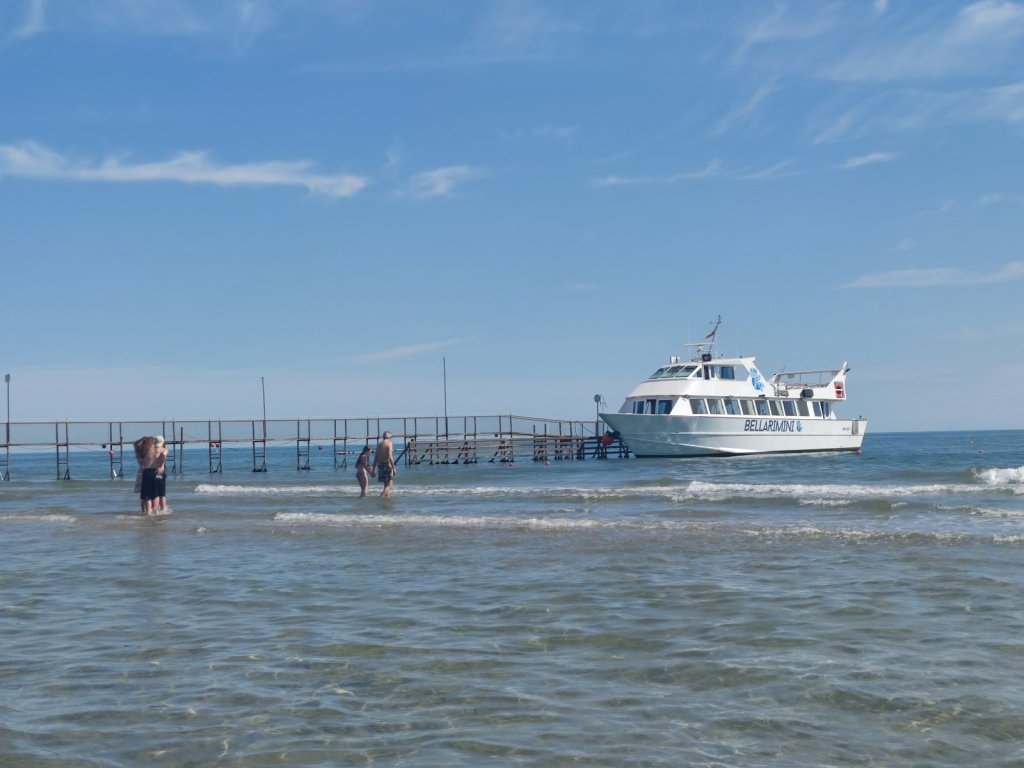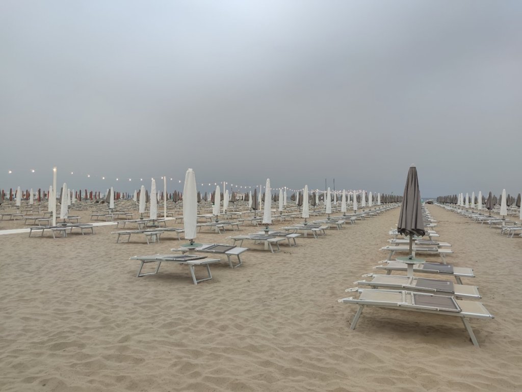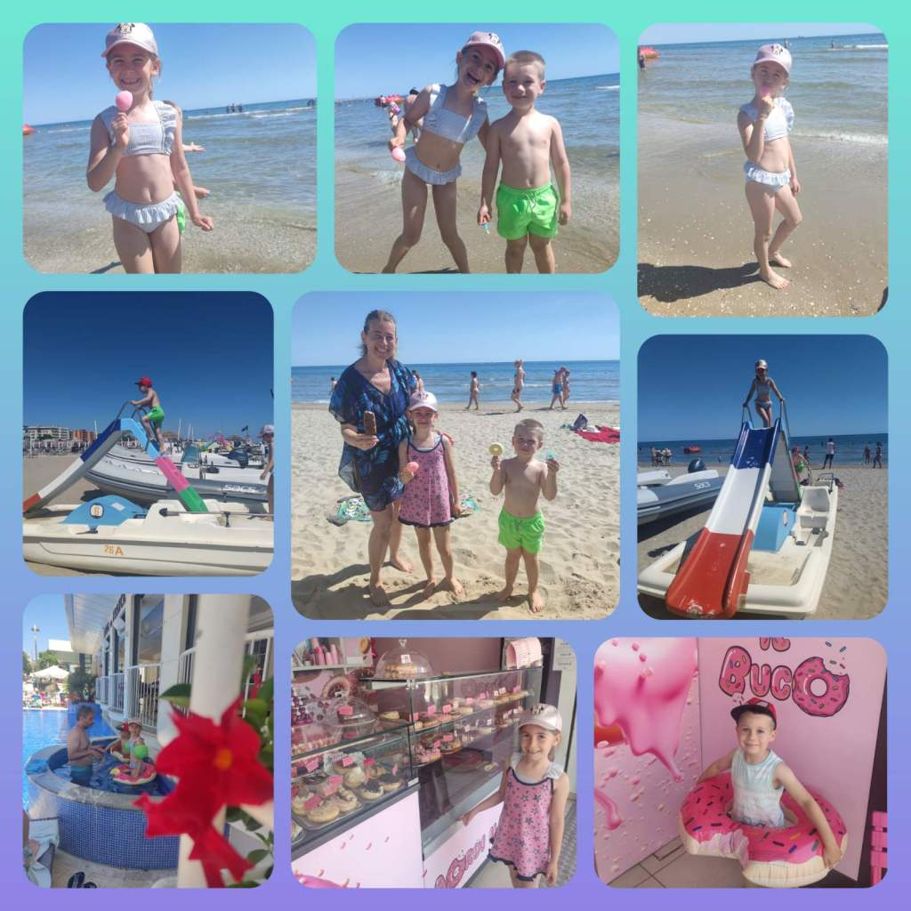 We arrived directly at Rimini Airport with a Ryanair flight from Budapest and checked into the De France Hotel located on the first line of the beach. Our room overlooked the sea and although it was small, it gave a wonderful coziness with its two-storey sofa and a balcony overlooking the sea. The beach was huge and despite the many umbrellas and sunbeds, we could still feel the spaciousness and privacy. In 2024, the price for an umbrella and two sun loungers on the first line was 30 euros, from the second to the eighth row 25 rows and the next rows of 20 euros, and this price also included the use of several playgrounds, jumping on inflatable castles, trampolines, ball pools, as well as animators who entertained the children while the adults lounged on the beach. Every day there was a children’s disco on the beach from 18:00.