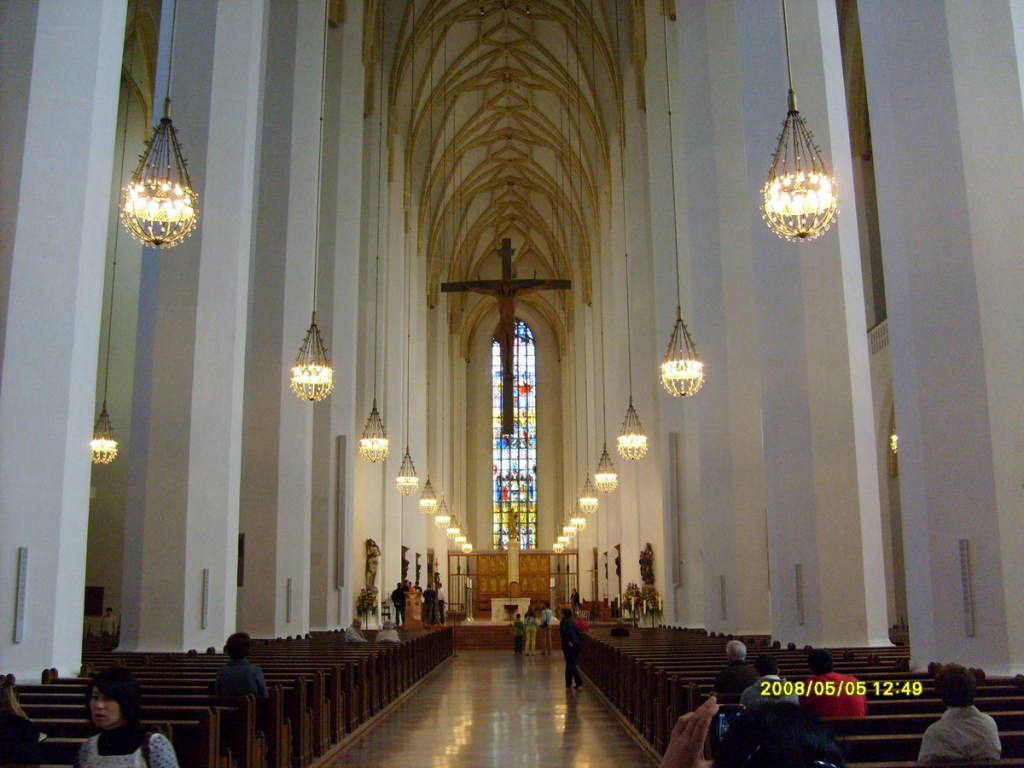 A few steps away is the gorgeous Münchner Dom (Munich Cathedral) called Frauenkirche (our dear lady’s church). Its twin towers survived during the massive bombings during WWII, but almost the whole interior was destroyed. The attractions that survived nowadays enchant the visitors. At the entrance, for example there is the Teufelstritt, or Devil’s Footstep. According to legend this black footprint represents the place, where the devil stood when he curiously regarded the ridiculed the “windowless” church that Halsbach had built. In baroque times, the columns hide little windows and the high altar would obscure the one window at the very end of the church, which is visible now at the entrance. The cathedral can hold approximately 20 000 people and it is among the largest hall churches in southern Germany.