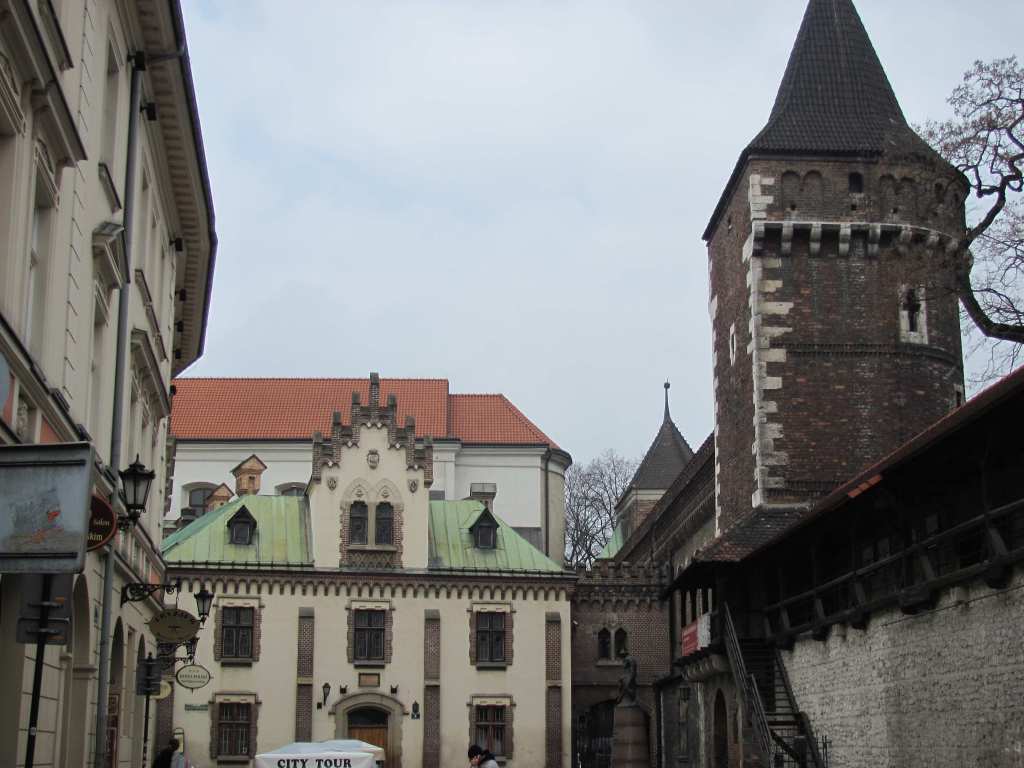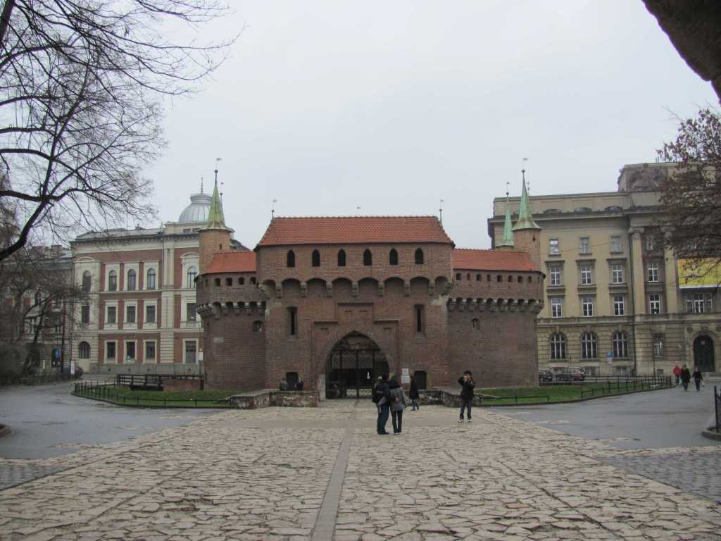 Our walking tour started from Kraków barbican (barbican – means outer fortification of a castle), this is the historical entrance leading to the old town of Krakow. This complex of fortification walls has toured the entire palace city of Krakow. It is currently a tourist attraction where many exhibitions are held (it is open to the public from 10:20 to 18:00 with an entrance fee of 18.00 PLN), but on a festive Saturday it was closed. The building itself resembles Arab rather than European architecture and, with its round façade, was a true masterpiece of military engineering at the time. It dates back to 1498 and is one of the few preserved in Europe, probably saved by the 3-meter-thick walls. In the past, it was directly connected to the fortress walls and served as an entrance door where those entering the city were checked.