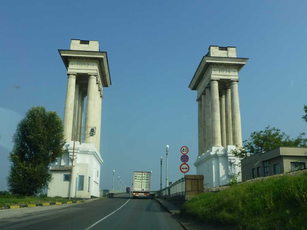 On July 25, the Orthodox Church celebrates the day of the Dormition of St. Anna – the patroness of marriage, family and motherhood, and on July 26 is the Catholic feast of St. Anna, that’s why we decided to celebrate my long name day in Romania, where several festivals were celebrated at the same time. We took the Ruse-Bucharest road in less than two hours, and we had a slight delay at the Romanian border until we bought a Romanian vignette. Before that, we did not have to wait and we passed quickly along the 30-meter high steel Danube Bridge, whose length was 2.80 km. At the very beginning of the bridge there were several high columns, with the left side inscribed 1952 (the year when the construction of the bridge had begun) and the second 1954 (when the bridge was officially opened). The bridge was built on 2 levels – for trains and cars, and at one time it was the largest combined bridge in Europe.