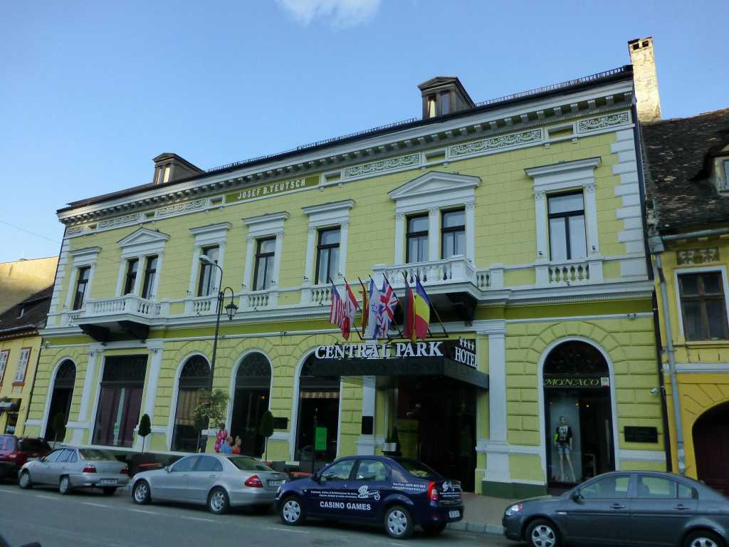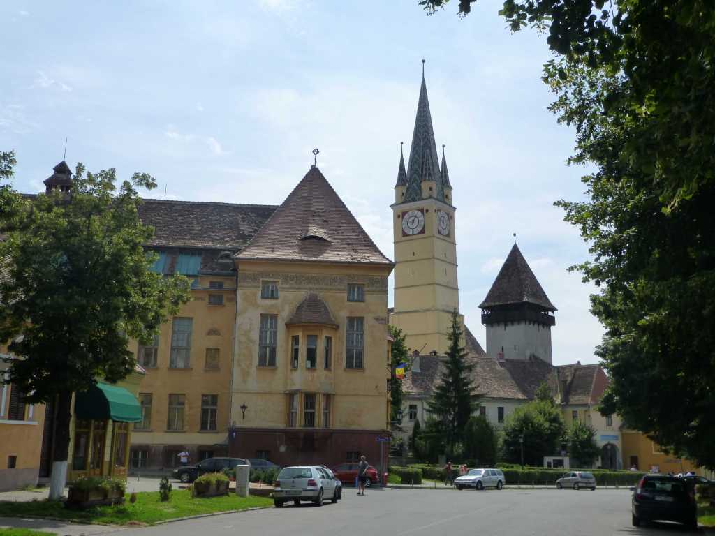Our road also passed through the medieval town of Medias, which also attracted us with its fortress walls and its old center, where we parked the car. Behind the fortress walls there were many beautiful houses, parks and churches. Time seemed to have stopped here too. There were almost no people on the streets. Ancient buildings seems to look for passers-by. From the center protruded the high tower of the church of St. Margaret, as well as the even older 70-meter tower from the 13th century, probably part of the fortress walls. The emblem of the city was a hand holding bunches, which we later learned embodied the good wine for which the city was famous.
