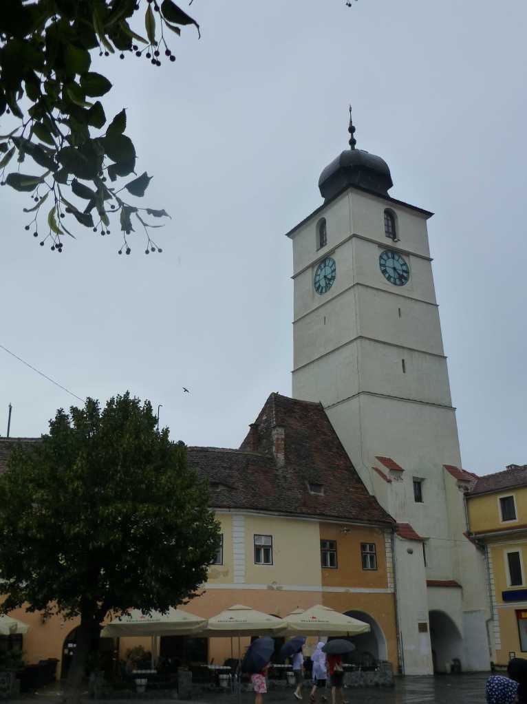 As soon as we went out, we immersed ourselves in their stories and the rain accompanied us, passing with us behind the red fortress walls, and intensified our tour of the fortress towers. However, by the time we choose a coffee to hide from the rain, it stopped. Our walk through the sights of Sibiu began with the red stone walls that descended and surrounded the town, erected in the 14th century and completely renovated in 1963. We found ourselves in front of the beautiful round tower of the archers. It was tall with many small windows through which arrows were shot in the 15th century.