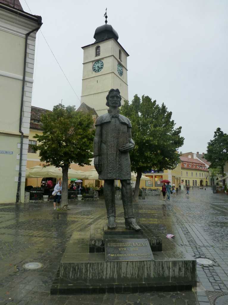 We didn’t see the lions, but we took pictures of the monument to Gheorghe Lazar (1779 – 1821), which was erected next to the tower of the town hall. He was a teacher born and died in Sibiu, being the founder of the first Romanian-language school in Bucharest in 1818.