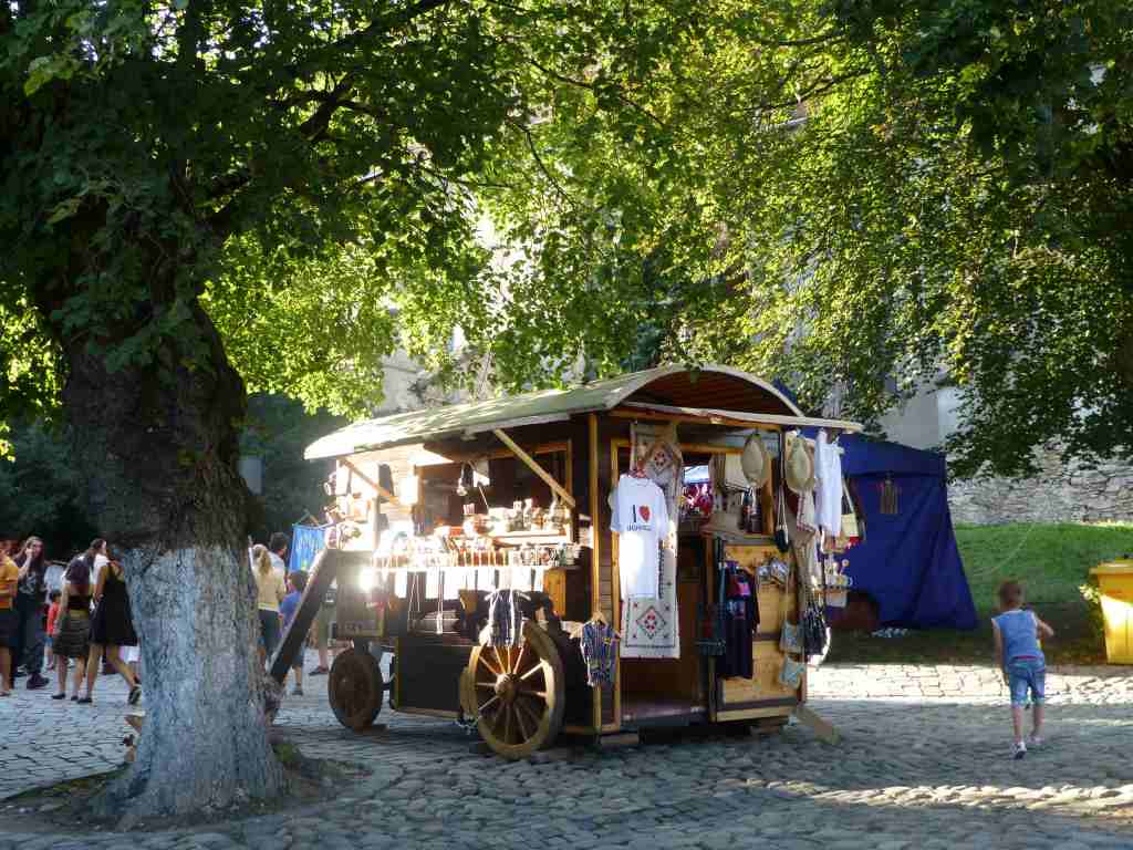 Passing through the many beautifully arranged souvenir carts, whose merchants were dressed in medieval costumes, and stepping along the cobbled medieval streets, we had the feeling that we had really gone back centuries, being in a large Transylvanian city. All the houses were neatly painted, and in the distance protruded the high towers to which we were headed.