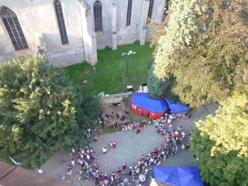 The medieval festival takes place every year on the last weekend of July, reviving historical moments from the Middle Ages and is often associated with the phrase “Once upon a time”. In search of medieval legends about the Templars, we climbed from the underside of the city to the fortress walls and the citadel. Since in the old part of Sighisoara there were many street performances and concerts on Friday, there was an entrance fee for passing through the fortress walls, but it was worth it, as on the other side of the fortress there was music and there were many people in traditional costumes. A crowd had gathered near the entrance watching fencing lessons, and the teacher was a Templar. To see better, we decided to climb high, and there was no taller building and a better panorama than the Clock Tower (Turnul cu Ceas), erected in 1360. Today it houses a historical museum and a wonderful panoramic platform from a height of 60 meters, from which a view of the whole city was revealed.
