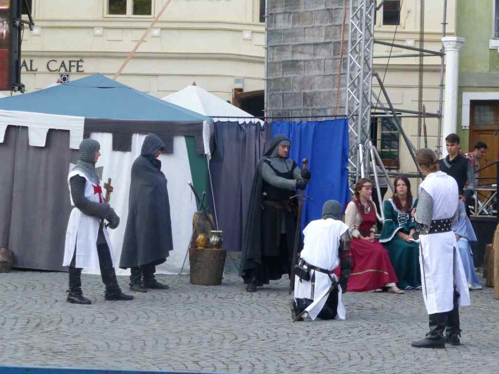 In the center of the big stage, the concerts had already begun, and there were dancers in folk costumes. An interesting spectacle followed with many knights, who were apparently trained in chivalry, and had a good, handsome, but strict teacher. During the performance, torches were lit, and although I could not hear the crackling of the twigs in them from the loud music, the aroma of burning dry wood was in the air. It was pleasant and I liked the performance, although I did not understand much of the text.