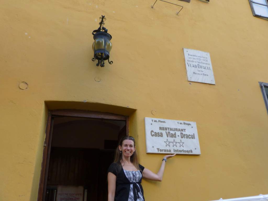 In the dark, we passed again by Vlad Dracula’s house (Casa Vlad Dracul), which during the day was full of tourists and we did not manage to visit, as Vlad the Impaler (Dracula) was born here. The museum house consisted of 2 rooms, and there was a restaurant on the upper floor. It is interesting how in such a picturesque and beautiful city as Sighisoara such a cruel man was born, whose legends continue to spread all over the world. In fact, Vlad the Impaler was the ruler of Wallachia, the son of Vlad II Dracula and Princess of Moldova. His father was a member of the Order of the Dragon (which in Romanian was Dracul, with a second meaning: Devil), and this was also the emblem of the house. Vlad Dracula was a cruel ruler and loved to torture and kill people. Later in the books, he was described as a man who drank people’s blood, even if it wasn’t exactly like that, a lot of blood leaked through his fault.